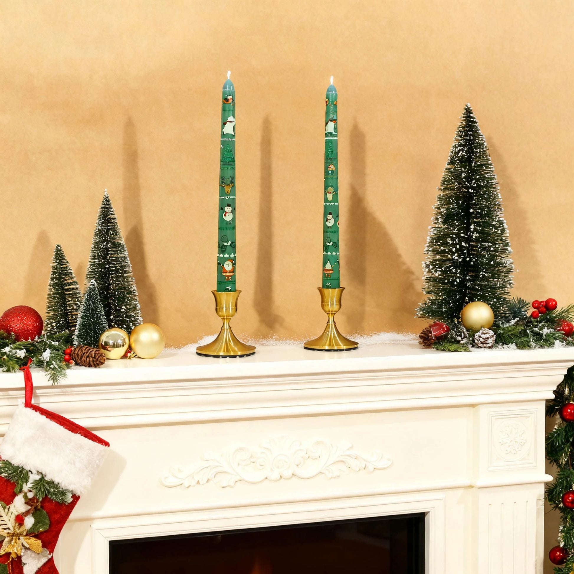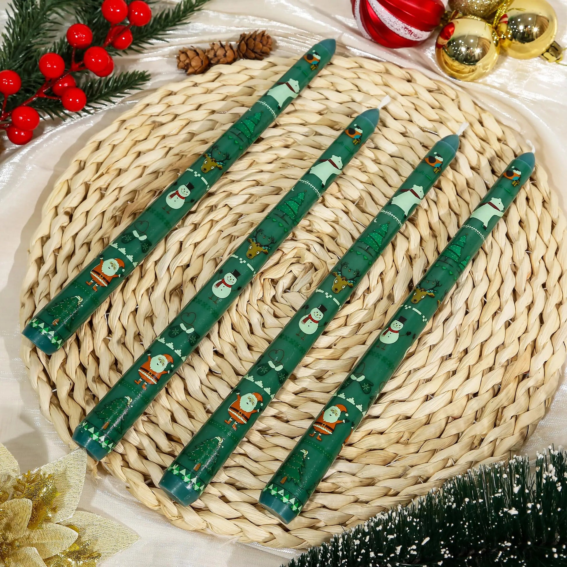 4 Pack Christmas Taper Candles, 10 Inch Unique Candlesticks with Santa Holiday Characters for Table Centerpiece Fireplace Mantel