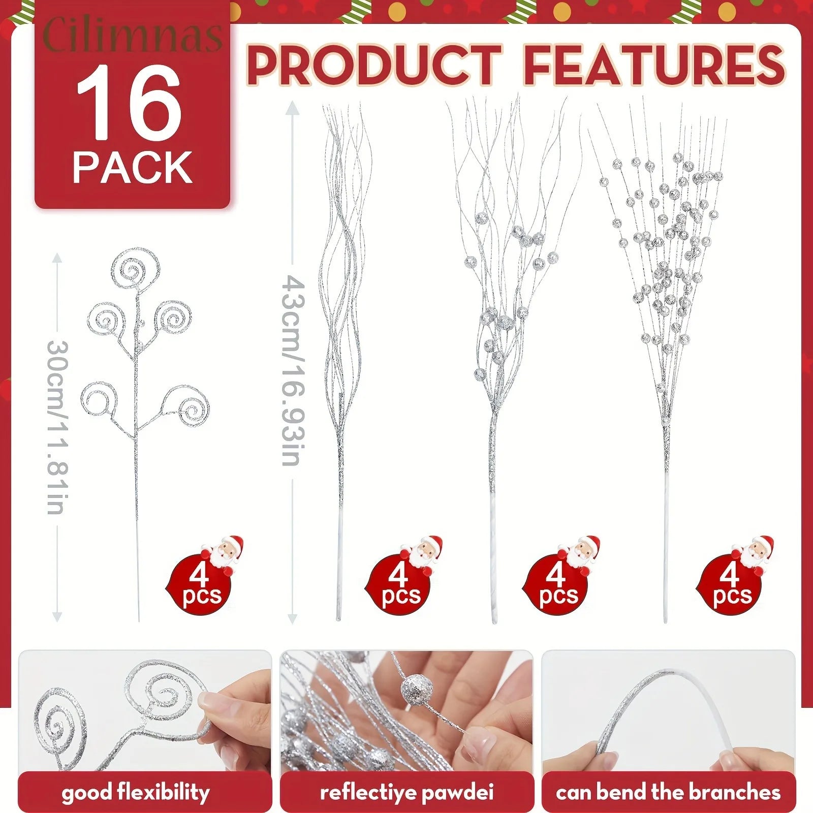 Perfect for Christmas trees, garlands, wreaths, floral arrangements, or gift wrapping, these accents bring a refined sparkle to any festive setup.