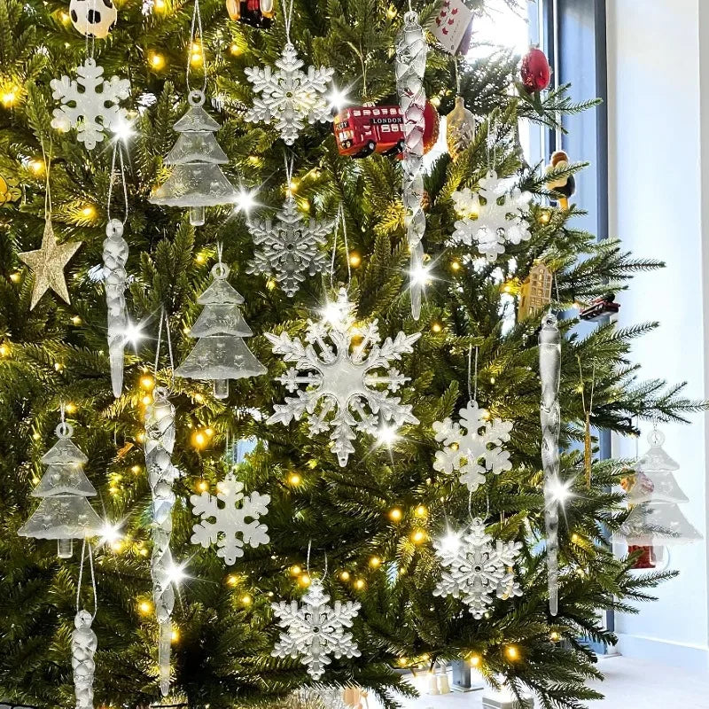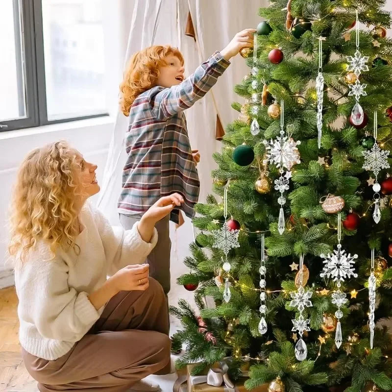Bring a frosty elegance to your Christmas décor with the Crystal Snowflake Pendant Set — a collection of clear acrylic ornaments that shimmer beautifully under warm holiday lights.
